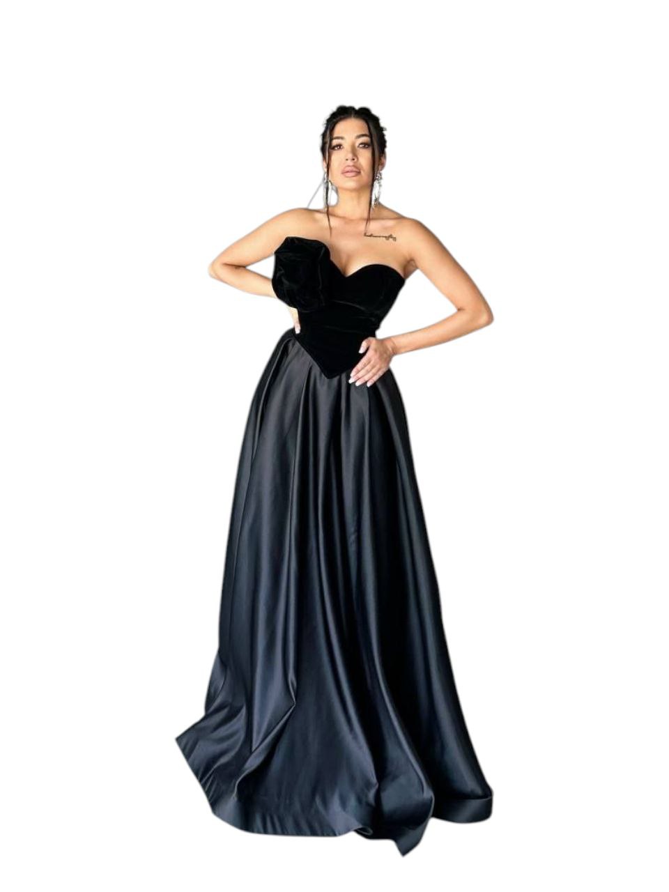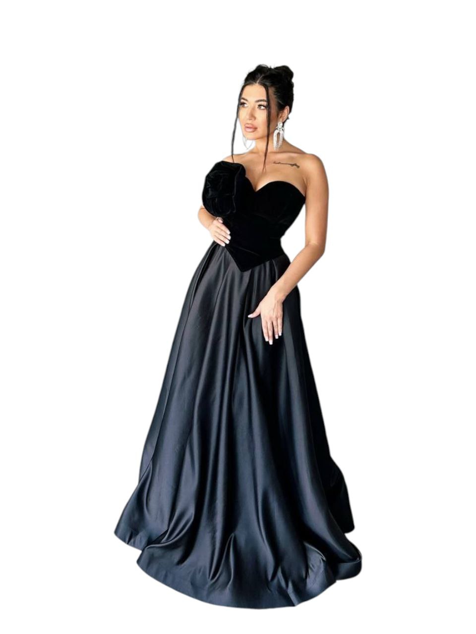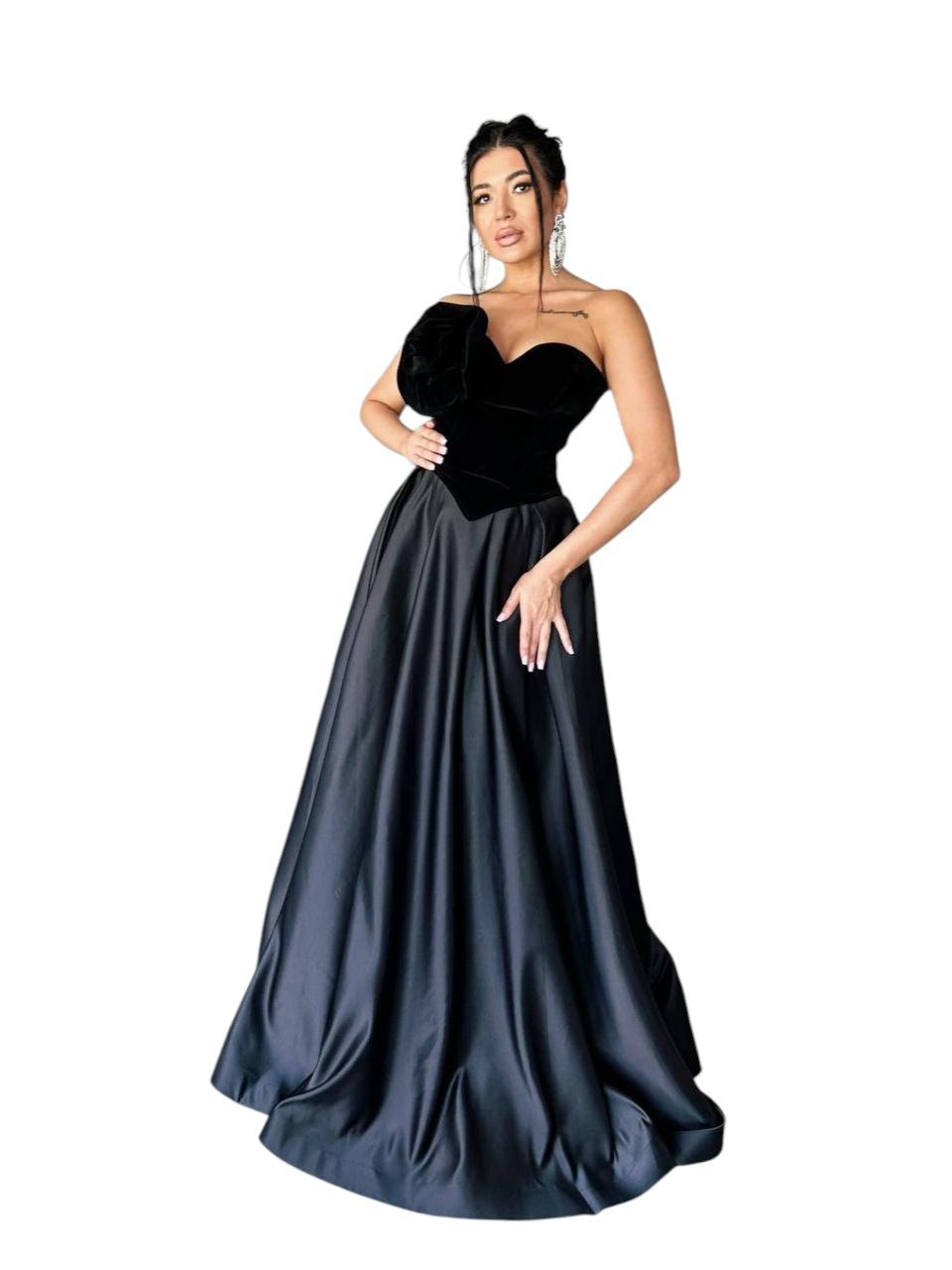 Eleganța supremă cu rochia noastră „Mia”O creație sofisticată formată din corset realizat din catifea fină, cu decolteu în formă de inimă și detaliu floral și