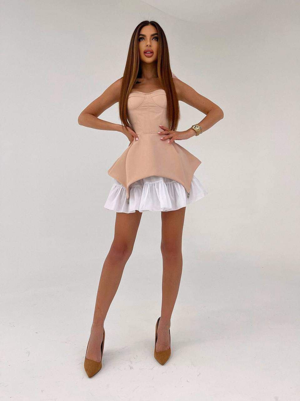 Rochie scurtă cu fustă din volane și cu push-up la sâni este o alegere îndrăzneață și elegantă pentru diverse ocazii. Această rochie combină volanele, care adaugă un aer feminin, cu plusap-ul, evidențiază zona bustului și oferă un suport suplimentar.